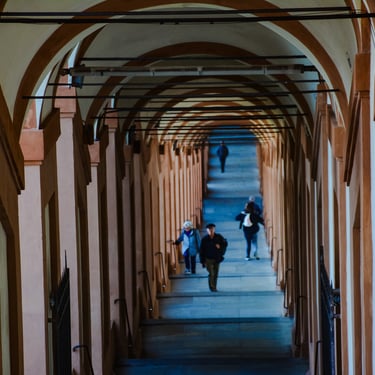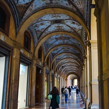 Our first stop was Bologna. Often called "La Dotta, La Grassa, La Rossa" (the Learned, the Fat, the Red), it is one of Italy’s oldest and most vibrant cities. Founded as the Etruscan settlement of Felsina around 1000 BCE, it was later renamed Bononia by the Romans in 189 BCE and grew into a major city. During the Middle Ages, it became home to the University of Bologna, established in 1088 and recognised as the world’s oldest university in continuous operation, attracting scholars like Dante and Copernicus. The city’s signature red-brick medieval architecture—towers, palaces, and endless porticos—earned it the nickname "La Rossa," while its intellectual tradition gave it "La Dotta." The city’s most iconic feature is its nearly 62 kilometres of porticos, the longest continuous network of covered walkways in the world—recognised by UNESCO. Begun in the late Middle Ages to expand living space above streets without encroaching on public land, the arcades became a practical and elegant solution to rain, sun, and crowded markets. Stretching from the city centre all the way to the Sanctuary of San Luca. The world’s longest single portico is 3.8 km with exactly 666 arches. This number was purposely chosen to lead the devil to the church of San Luca.