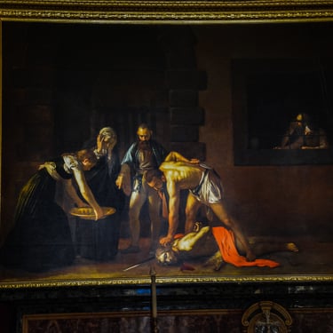 The painting depicting The Beheading of Saint John the Baptist by Caravaggio is the most famous work in the church. Considered one of Caravaggio's masterpieces, the largest canvas he painted and the only painting signed by the painter. He signed it within the blood of St. John. The painting is very simple but incredibly realistic.