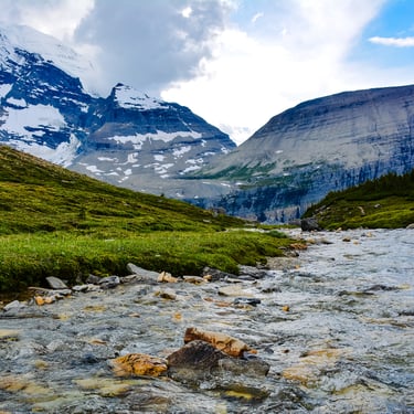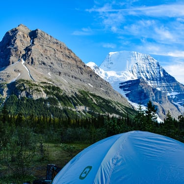 The next morning we woke up to a blue blazer of a day and packed up and made our way toward, and beyond Berg Lake and its impossible beauty, to the last camp before the Alberta border, the Robson Meadows campsite. With a great view of Mount Robson and an additional view toward the Snowbird pass valley.