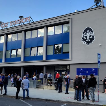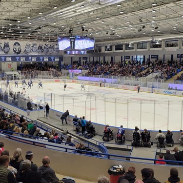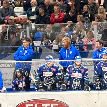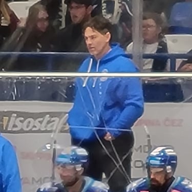 Sparta Praha vs. The Knights of Kladno. There was a great atmosphere at the hockey game in Kladno tonight. For those who don't know, Kladno is owned by hockey legend Jaromir Jagr. Jagr last played earlier this year and helped keep the Knights in the top Czech league. There are rumors he'll be back out there again soon, at age 51. We were hoping it might be tonight, with the top Czech team Sparta Praha in town, but we had to settle for seeing him behind the bench.
