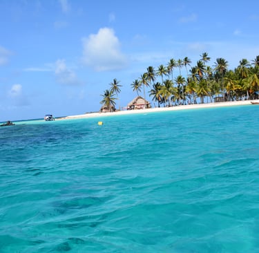 The islands are administered autonomously from Panama by the Kuna indigenous people. You have to cross passport control as part of the journey is to a region which is known as Comarca Kuna Yala. The drive to the port is 2-3 hours from Panama City with the last 45 minutes a poor road over the continental divide toward the coast. The road is notorious for passengers getting car sickness as it constantly goes up and down with endless sharp turns. To maximise your time on the islands pick-up in Panama City is typically just after 5 am. Upon arrival at the port around 8 am, your driver turns you over to the Kuna people, among the world's smallest people. After about 20 minutes of confusion and chaos, you are brought to the pier to board your fibreglass boat for the 45-minute journey to the islands. The boats seat about twenty people and three crew. If the road to the dock wasn’t enough to get you sick the white knuckle boat ride out to the islands might. It was the dry season when we went, but that also meant windy season, the sea was very rough and the boat was slamming down hard after every 10-foot wave. You will get wet several times on the way out. We passed many islands before finally arriving on our island Coco Blanco, just as we arrived a splash came into the boat and the lady behind us was hit with a small squid.