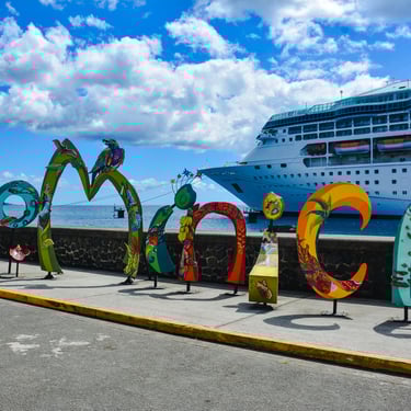 Dominica is almost 100% volcanic and up in the mountains there is a boiling lake. One of only two in the world, the other in New Zealand. We hiked to see the Emerald Pool and Trafalgar Falls as well as walking around the capital of Roseau. There isn’t much tourism here, as they don’t have any resorts, sandy beaches, and no international flights and they receive the most rainfall in the Caribbean, averaging an inch or 25mm of rain a day! They are also prone to hurricanes, many recent and historical hurricanes have caused incredible damage here. I have a picture of the school bus that was crushed under a tree in a 1960s storm. (Nobody was in it)