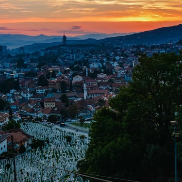 They said Sarajevo had great sunsets. Everyone asks what your favourite place is, of course, there is no answer to that question, but Sarajevo is a STRONG contender. Here are a few shots of tonight's sunset. The white markers are graves from the war. Don't worry, I'll have much more to say about Sarajevo tomorrow...