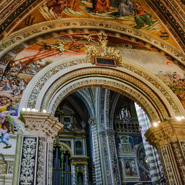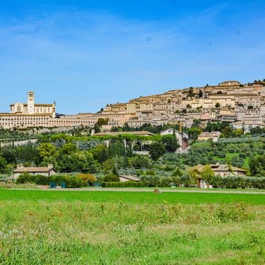 The next morning we were off by car to Assisi, famous for St. Francis of Assisi and its Basilica di San Francesco d'Assisi. While walking down to the train station where our car was waiting. I spotted the Irish couple who had arrived by train. Hey, I said, you guys made it. We talked to them for a few minutes and they recognized my Kilkenny hurling hat as only Irish do. The drive through the rolling forested hills of Umbria was quite beautiful, but unfortunately, when we arrived in Assisi, there was a G7 conference there and we were unable to get close to the Basilica. We strolled around Assisi for a while, had lunch and drove to our next destination in Tuscany, Siena.