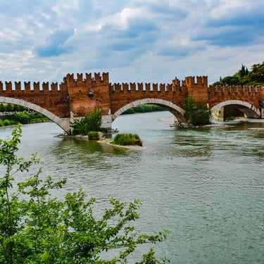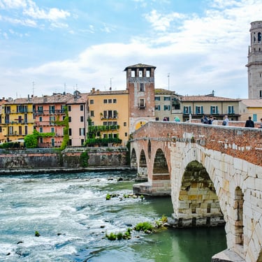 Celebrated by Shakespeare, who made it famous as the romantic setting for the moving tale of Romeo and Juliet, Verona is a splendid, ancient corner of the Veneto region, nestling between the river Adige and Lake Garda, and intimately linked to their waters. The Adige today flows between strong embankments, built after the 1882 flood to contain the devastating river water. The city's symbol is the great Roman Arena (Arena di Verona). Located in Bra Square, this Roman amphitheatre dates back to the 1st Century AD and is the third largest of the world. It is extremely well-preserved and every year it still hosts concerts and operas between July and August.